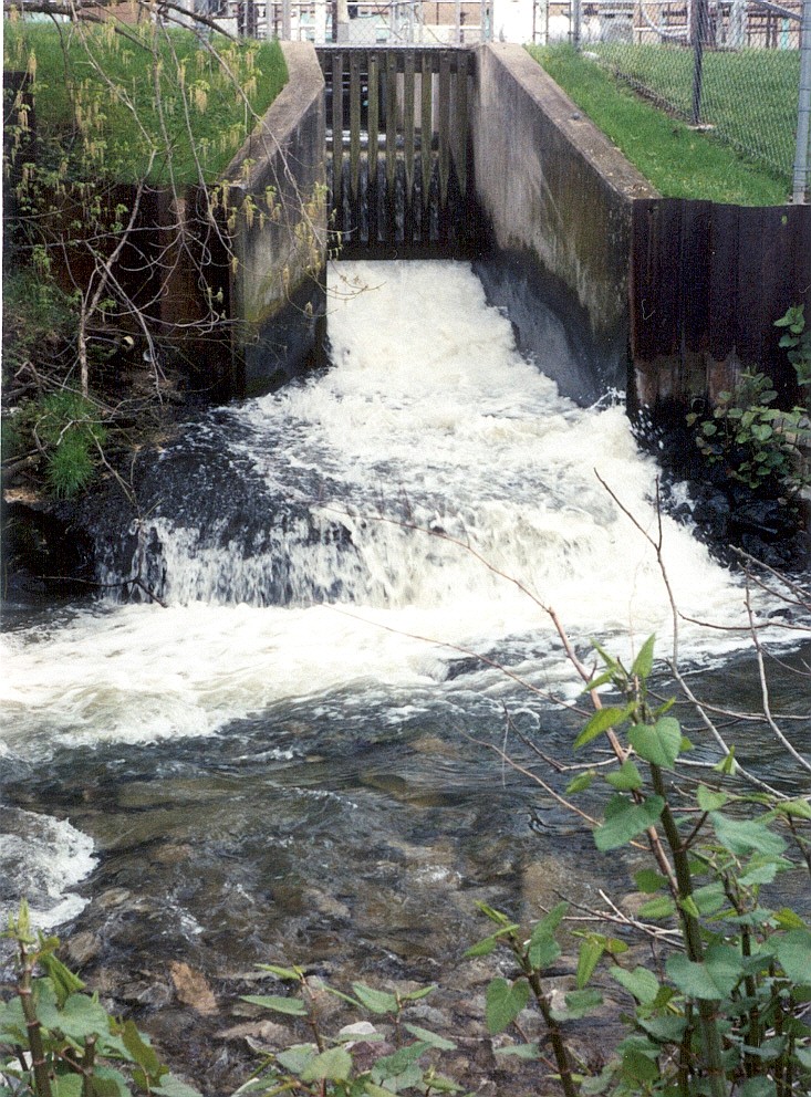 Catfish Run enters Piney Fork Run immediately upstream of this sewage treatment plant outfall.
