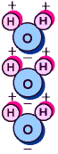 A molecule of water is composed of 2 hydrogen atoms and 1 atom of oxygen. The atoms align in such a way that the molecule becomes slightly polarized, that is, the hydrogen end has a positive charge and the oxygen end has a negative charge. The result is that water molecules are "sticky"; they tend to align negative end to positive end and stick together.